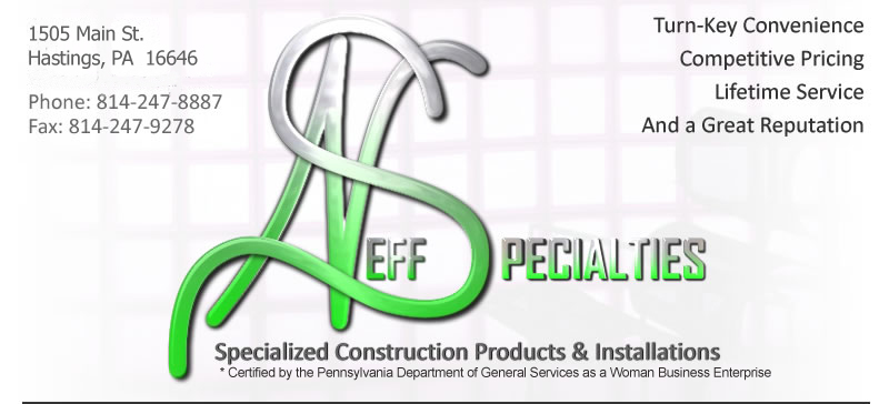 Neff Specialties’ 13,000 square foot facility houses our office and warehouse and gives us the ability to receive and store deliveries for reshipment to your site at your convenience. Our fleet of well-equipped service vehicles assures that we can provide speedy and professional service. Please feel free to share your experience with our company by emailing Shari@NeffSpecialties.com.